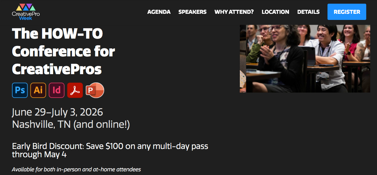 What makes Creative Pro Week unique is its super-practical approach, with over 35 expert speakers delivering more than 70 sessions. Every session is focused on techniques you can use in your work today. The conference covers all skill levels, so whether you’re new to video editing or a seasoned pr, you’ll find something useful.