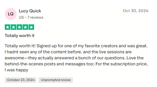 Kristina K said it was easy to use, liked exclusive content, and stuck around for livestreams.
